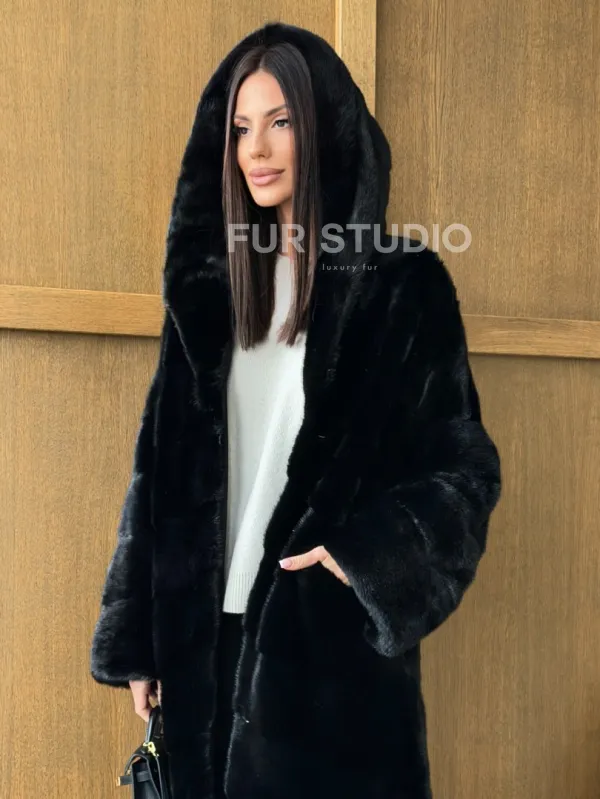 Черная норковая шуба с капюшоном доступна для покупки в нашем шоуруме Furs Studio в . У нас так же есть доставка во все города России. Добавьте немного роскоши в свой гардероб с этой шубой, которая будет служить вам многие годы.