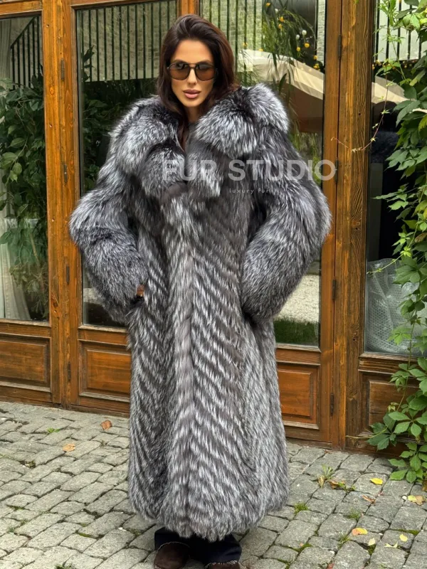 Длинная шуба из чернобурки в росшив доступна для покупки в нашем шоуруме Furs Studio в . У нас так же есть доставка во все города России. Добавьте немного роскоши в свой гардероб с этой шубой, которая будет служить вам многие годы.