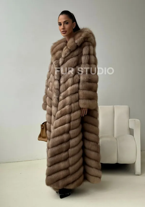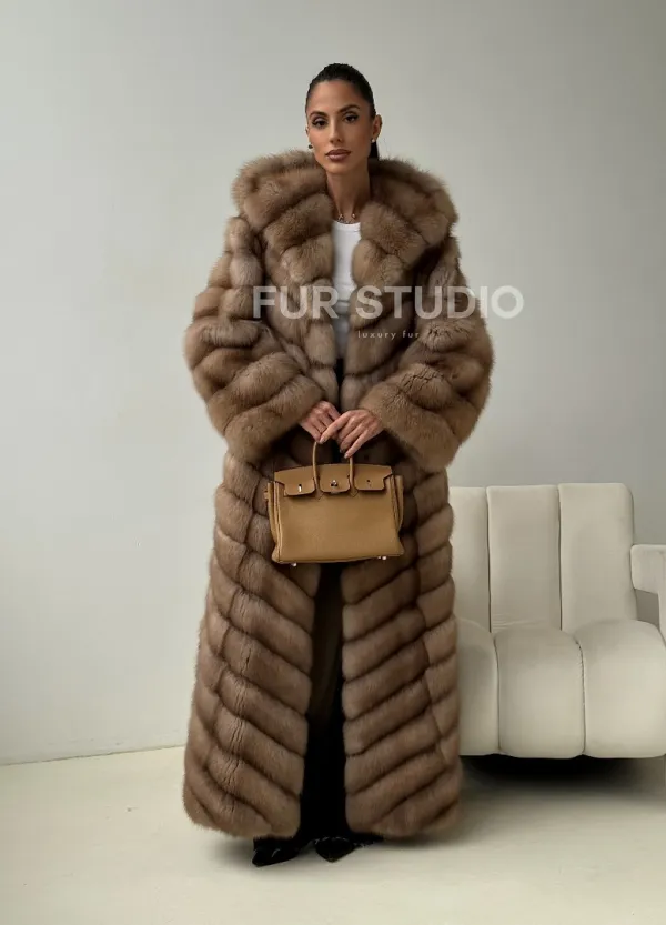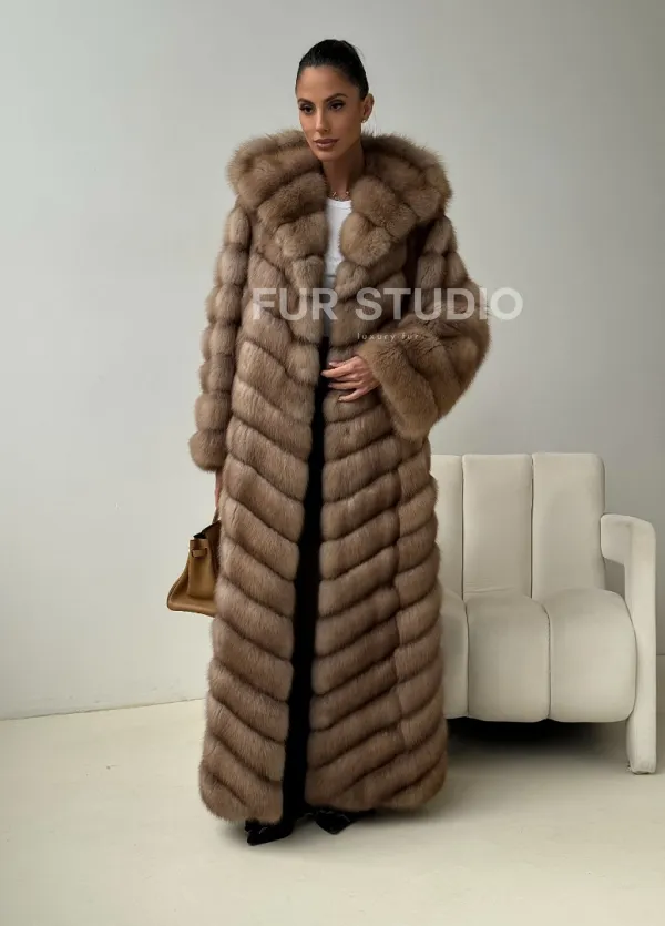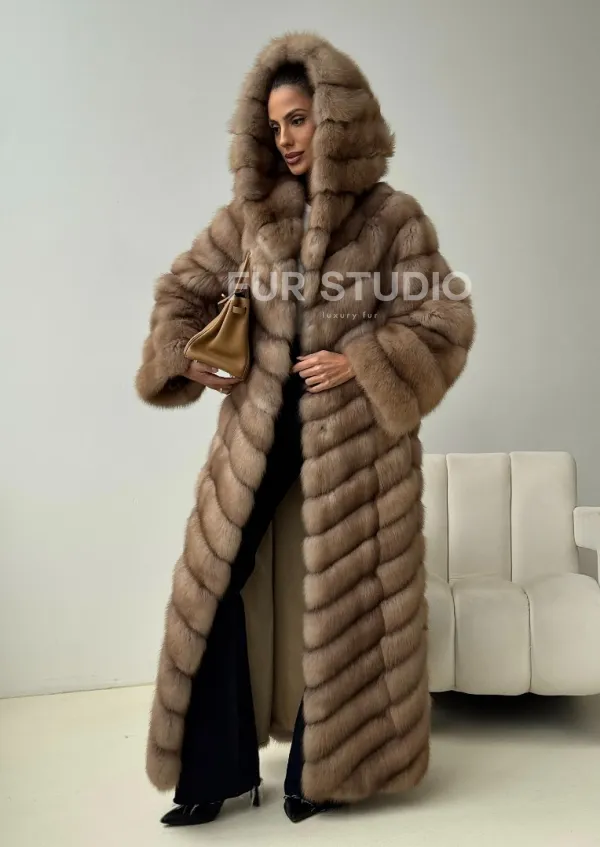 Длинная шуба из меха куницы с капюшоном доступна для покупки в нашем шоуруме Furs Studio в . У нас так же есть доставка во все города России. Добавьте немного роскоши в свой гардероб с этой шубой, которая будет служить вам многие годы.