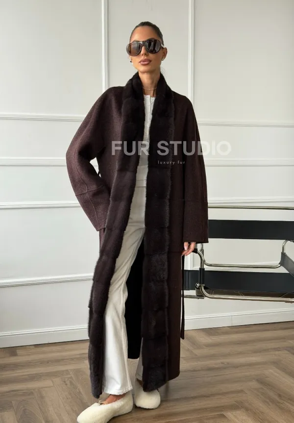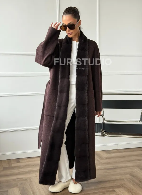 Длинное демисезонное пальто с мехом норки 102673