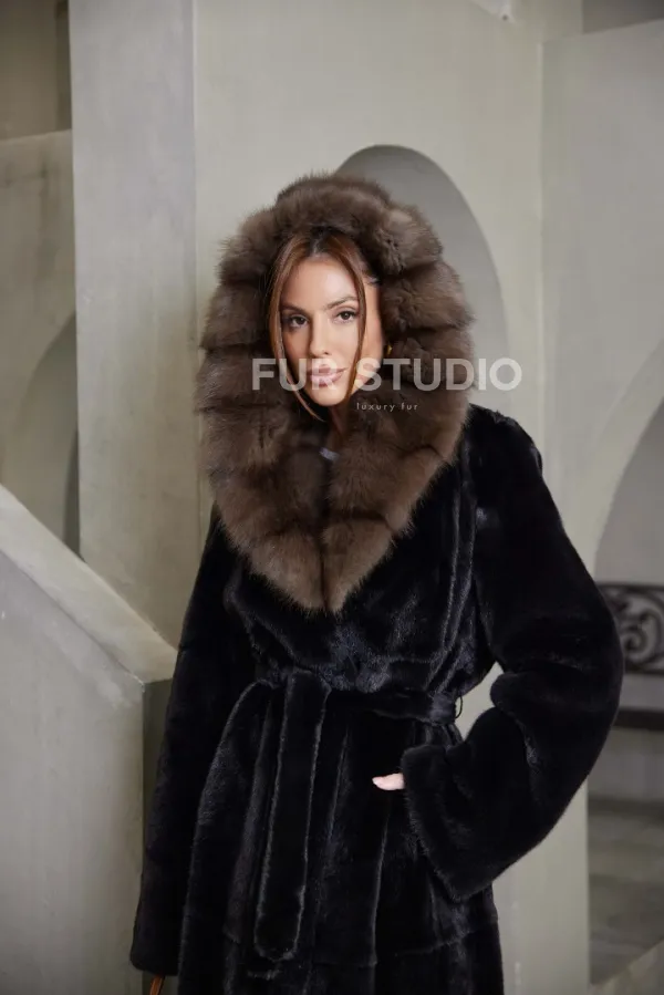 Норка BLACKGLAMA пластины капюшон куница доступна для покупки в нашем шоуруме Furs Studio в . У нас так же есть доставка во все города России. Добавьте немного роскоши в свой гардероб с этой шубой, которая будет служить вам многие годы.