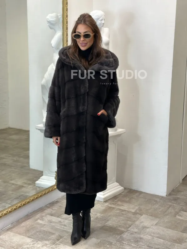 Норковая шуба в цвете графитовый уголь с капюшоном доступна для покупки в нашем шоуруме Furs Studio в . У нас так же есть доставка во все города России. Добавьте немного роскоши в свой гардероб с этой шубой, которая будет служить вам многие годы.