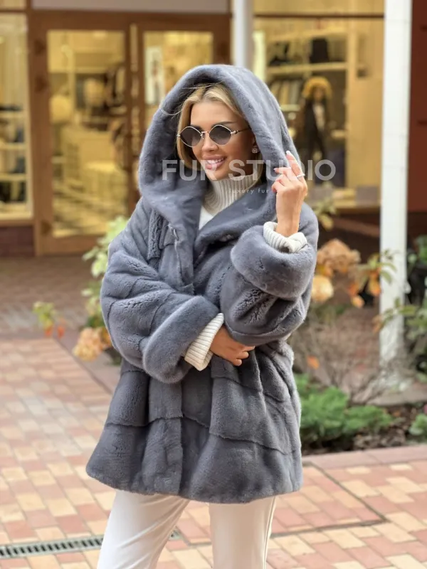 Норковое пончо с капюшоном 100324