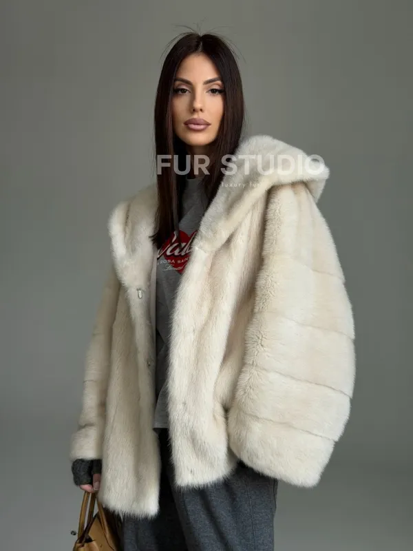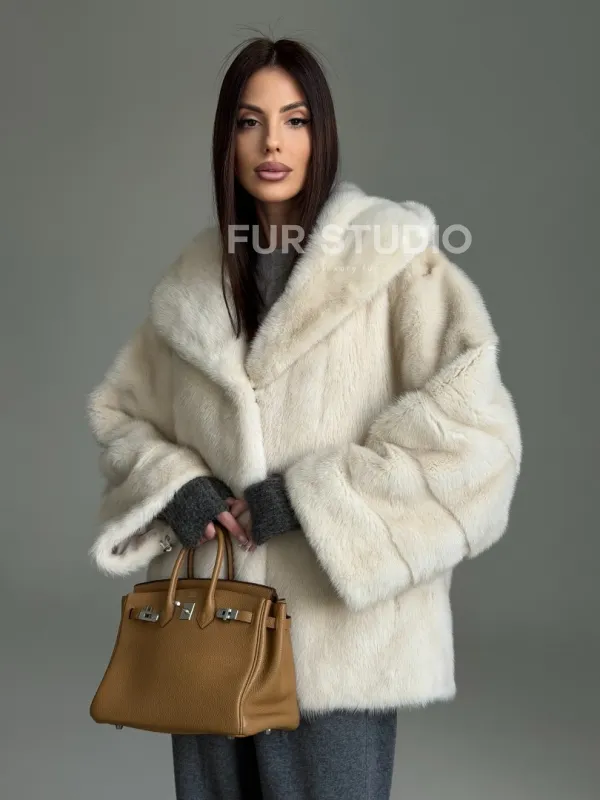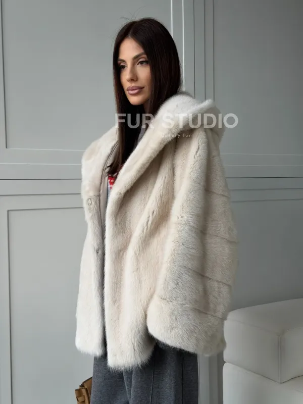 Норковый полушубок с капюшоном кобра 102835