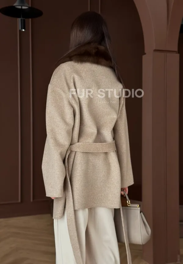 Пальто с отделкой из меха песца 102908