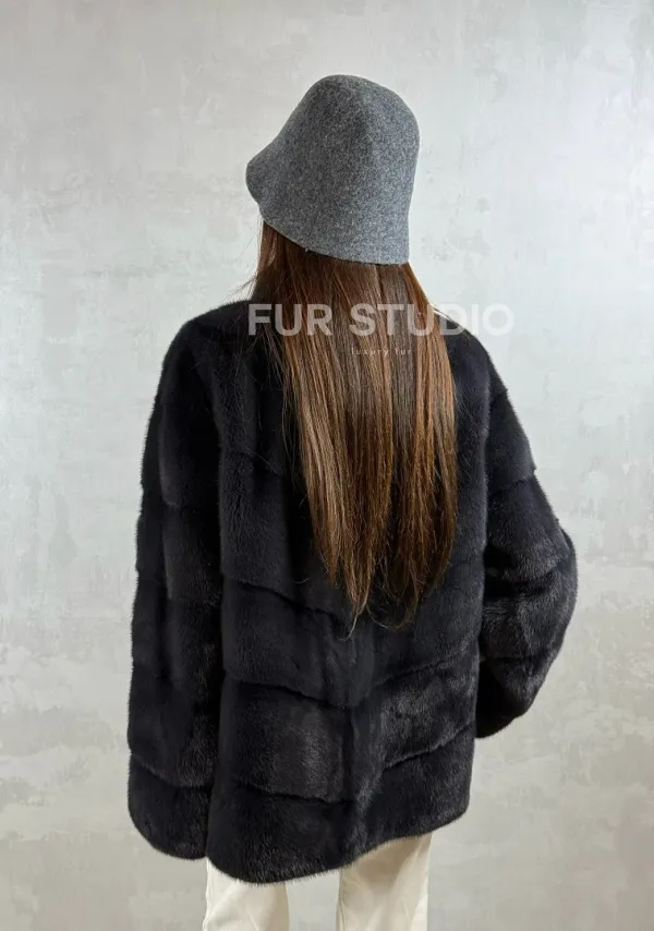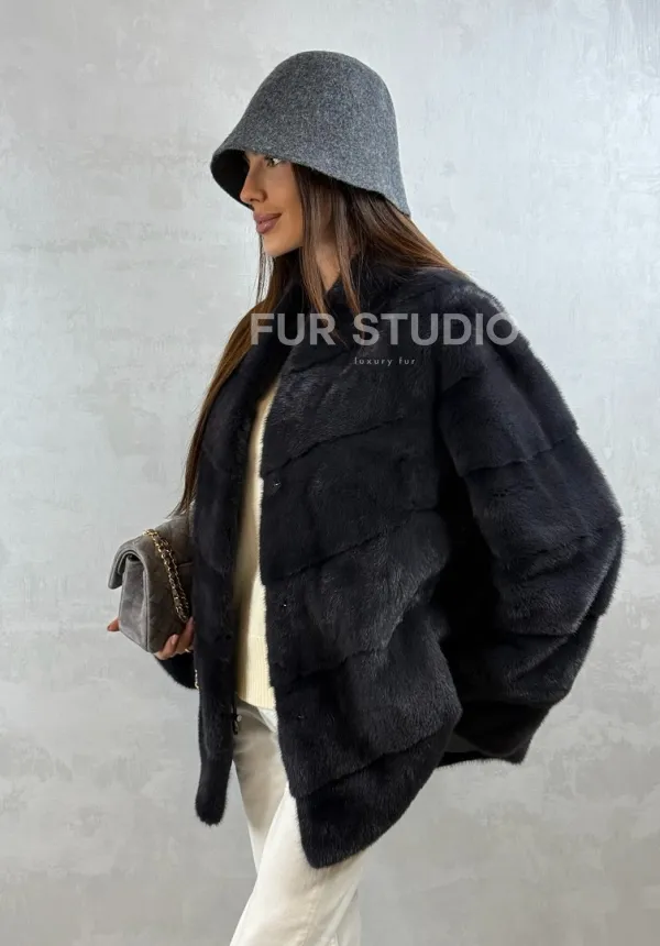 Полушубок норковый - темный графит 102416