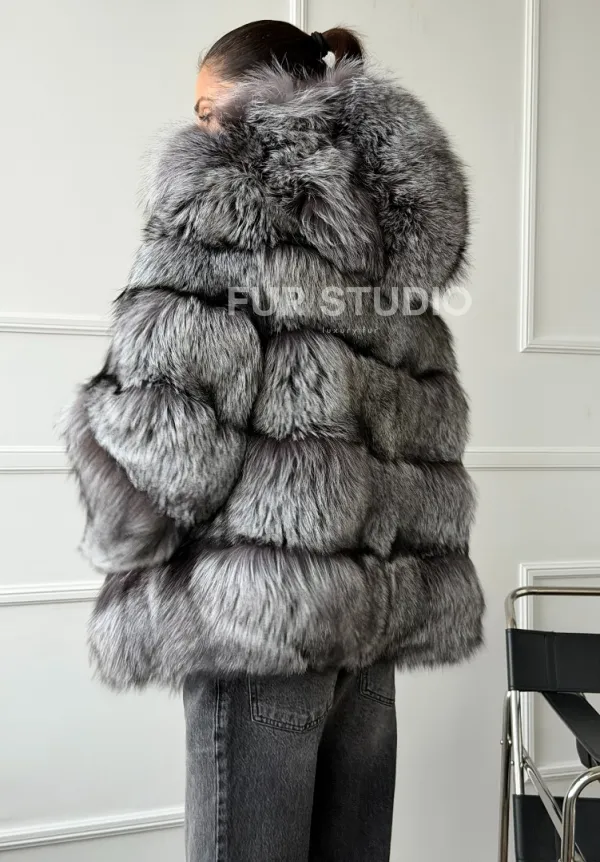 Мех данной шубы лиса, цвет серый. Предлагается в размерах от 42 до 48. Длина модели 60-65 см, что выгодно подчеркивает фигуру девушек. Эта модель идеально подойдет для девушек и женщин, предпочитающих роскошные натуральные меха.