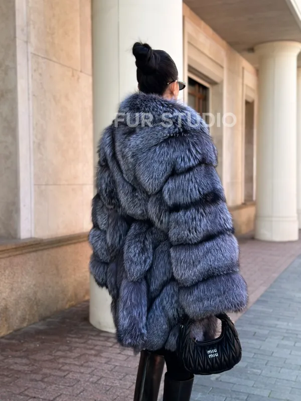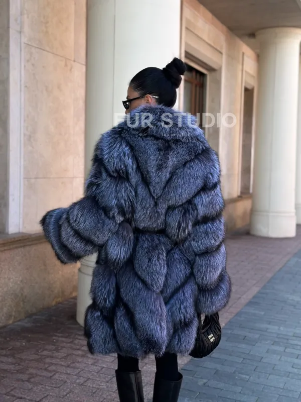 Шуба из меха чернобурой лисы - поперечка 100987