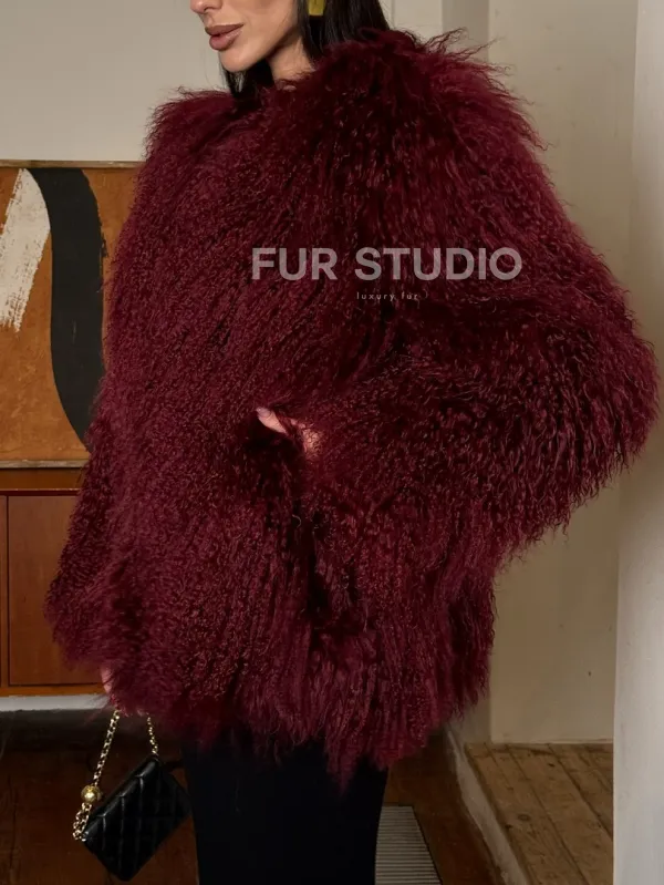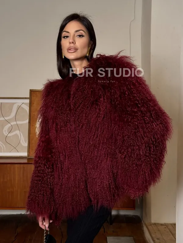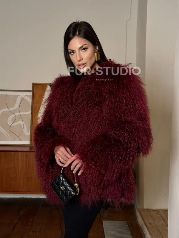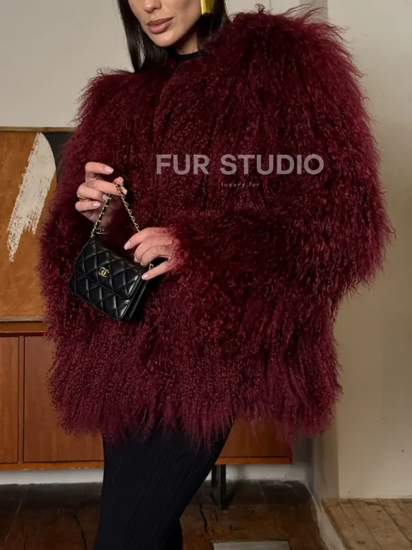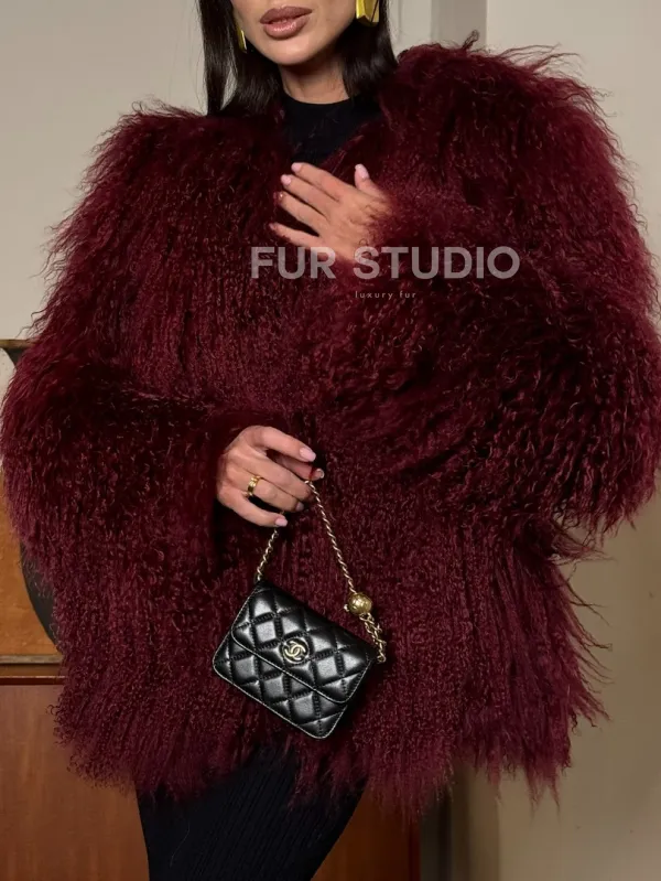Шуба из меха ламы цвет Burgundy 101443