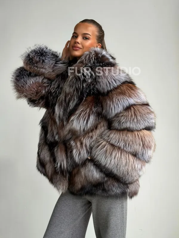 Мех данной шубы лиса, цвет серый. Предлагается в размерах от 42 до 50. Длина модели 65-70 см, что выгодно подчеркивает фигуру девушек. Эта модель идеально подойдет для девушек и женщин, предпочитающих роскошные натуральные меха.