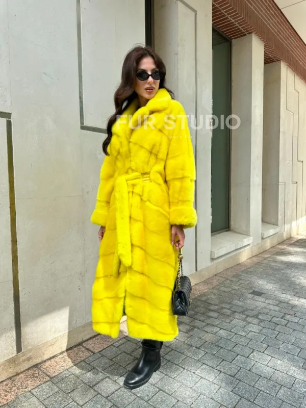 Шуба из меха норки в лимонном цвете доступна для покупки в нашем шоуруме Furs Studio в . У нас так же есть доставка во все города России. Добавьте немного роскоши в свой гардероб с этой шубой, которая будет служить вам многие годы.