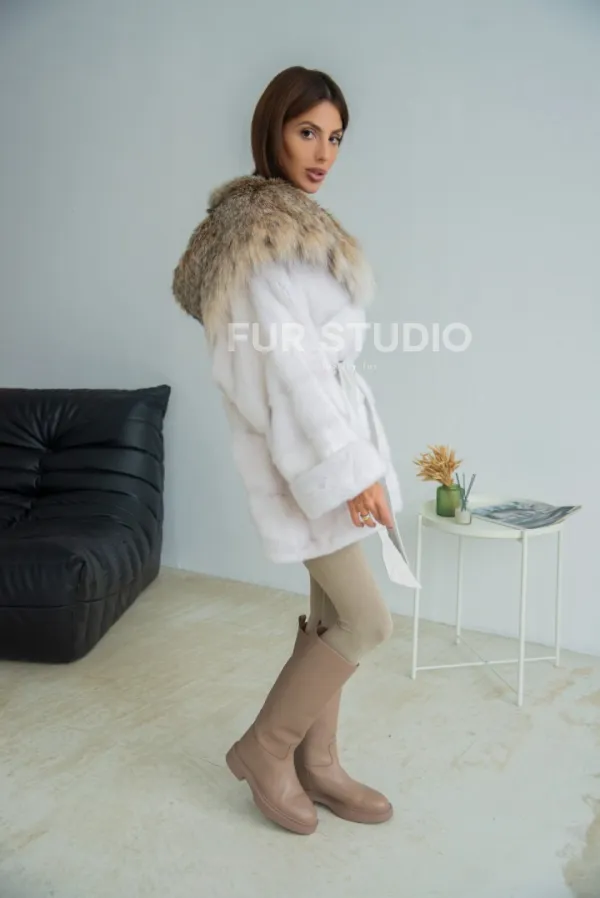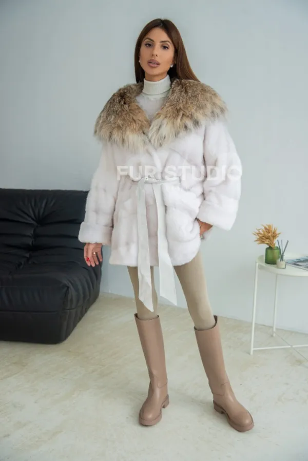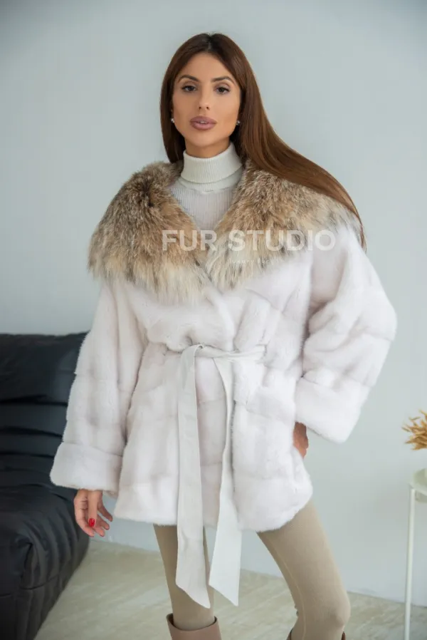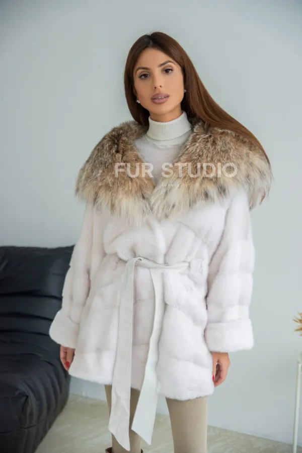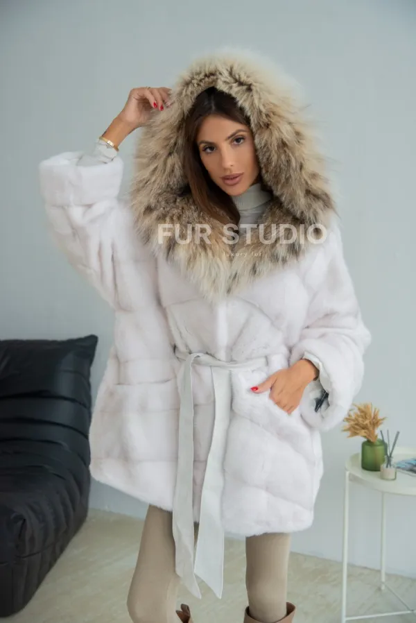Шуба-пончо из меха норки с капюшоном из рыси 100219
